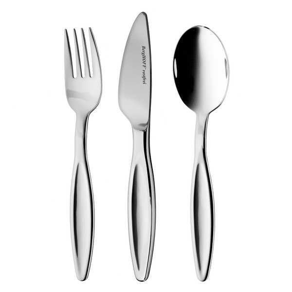 Príbor Kids – Folio 3-dielnySúprava skutočných príborov pre deti, ktoré chcú jesť sami, ale ktorých ruky sú príliš malé na plnohodnotnú verziu.Aj pre malé deti stále používame najlepšiu nerezovu ocel 18/10, z ktorej je vyrovená aj tato sada.Tento príbor je výsledkom spoluprácu medzi spoločnosťou BergHOFF a oceneným dizajnérom Ralphom Kramerom. Každá položka sa vyznačuje vynikajúcou rovnováhou, vynikajúcim povrchom a silou. To všetko sa dosiahlo použitím vysoko kvalitnej nehrdzavejúcej ocele 18/10 a ergonomicky rozloženej hmotnosti medzi rukoväťou a hlavou.Táto detská sada obsahuje:1x Lyžicu 16cm1x Vidličku 16cm1x Nôž 17,5cmVhodný do umývačky riadu.