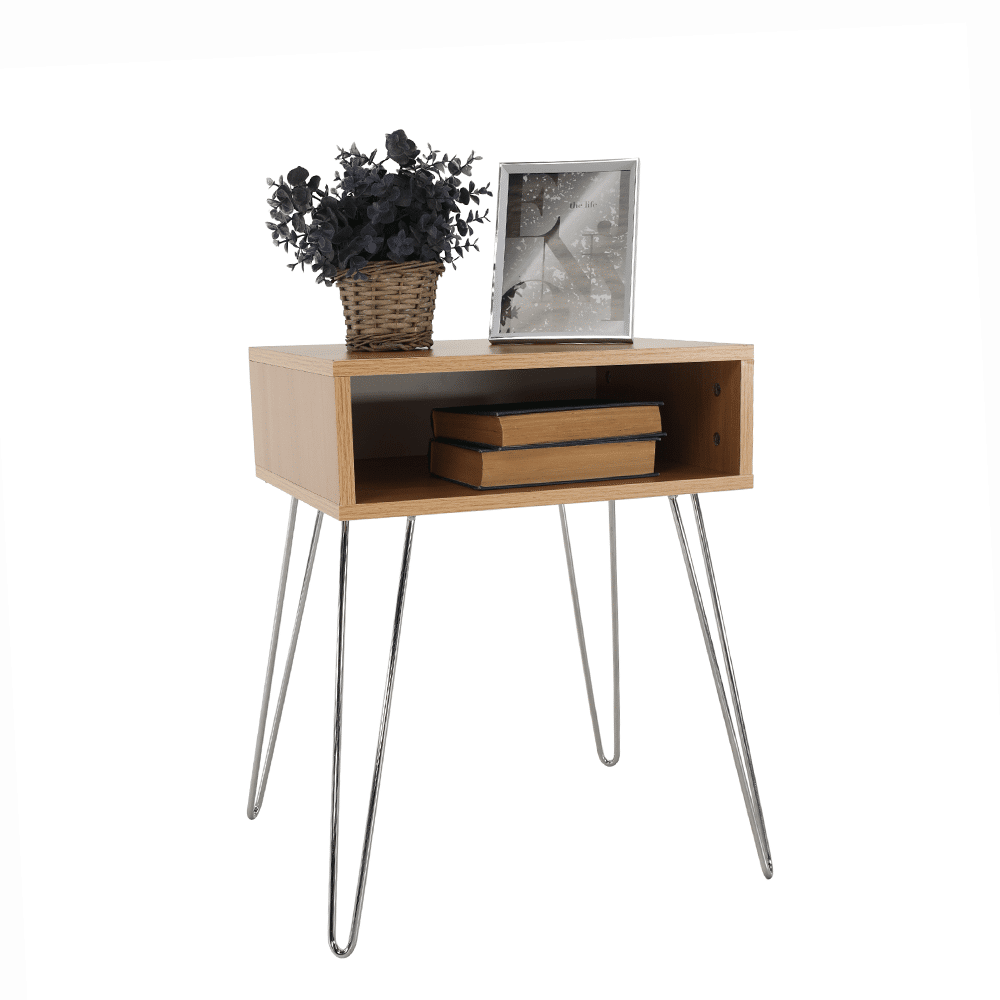 Príručný/nočný stolík, dub/chróm, LAMEJ