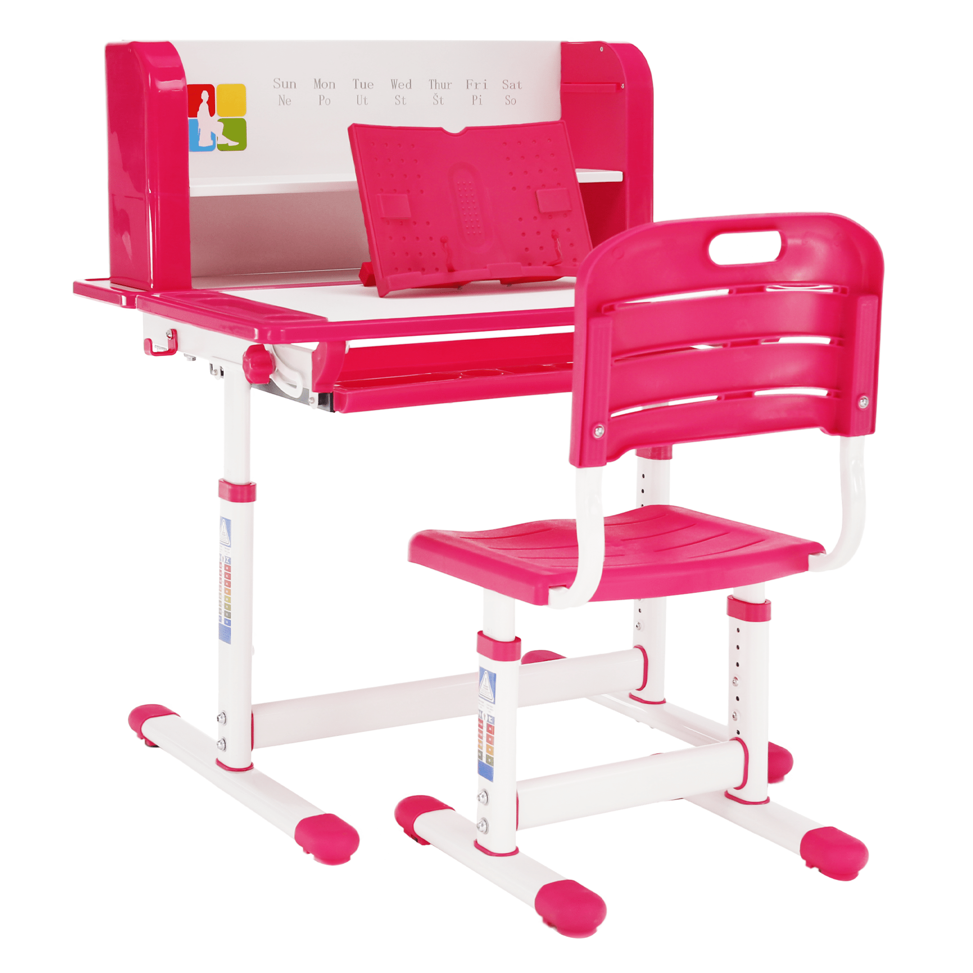Rastúci písací stôl a stolička, ružová/biela, set LERAN