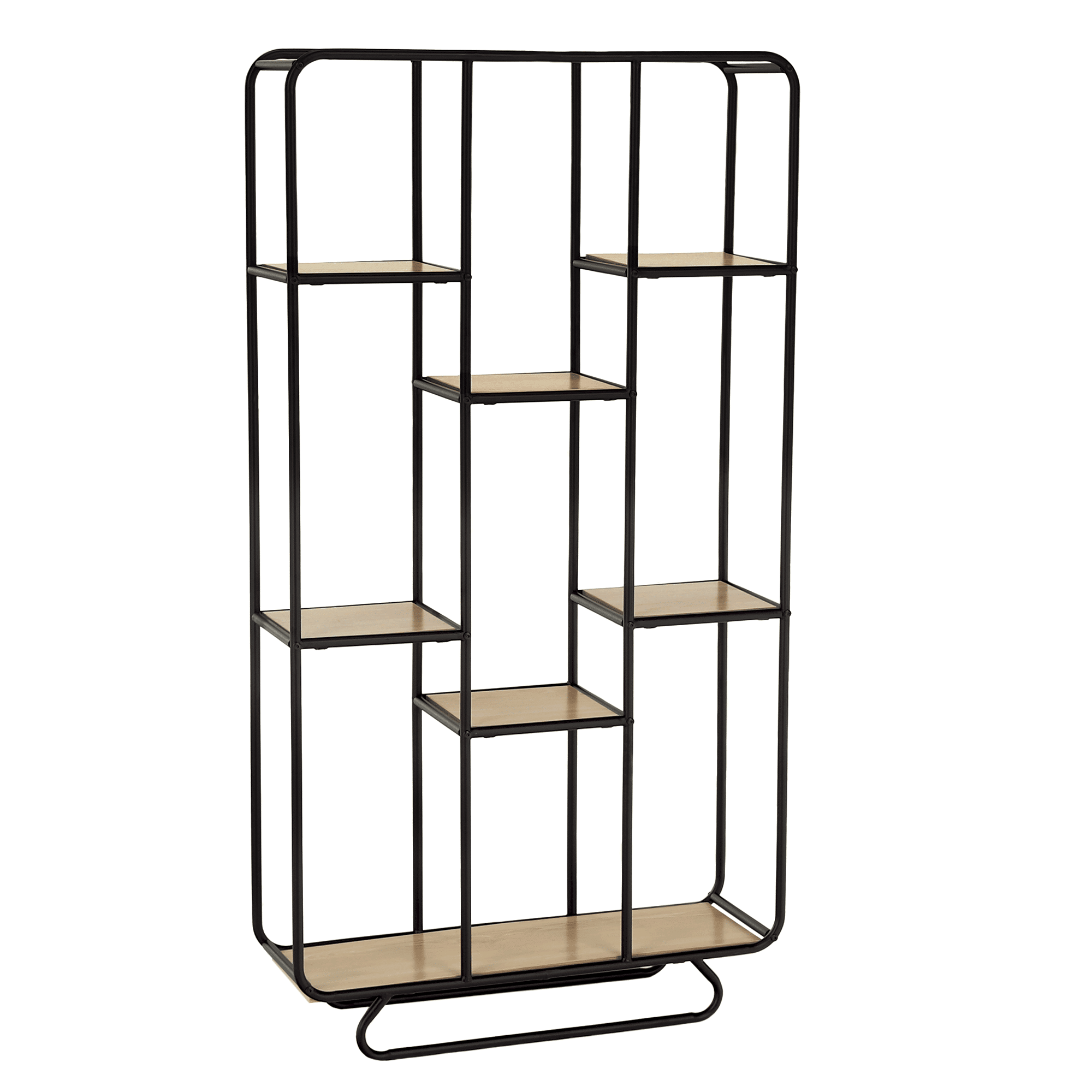 Regál, 7-policový, čierna/prírodná, SIMAL