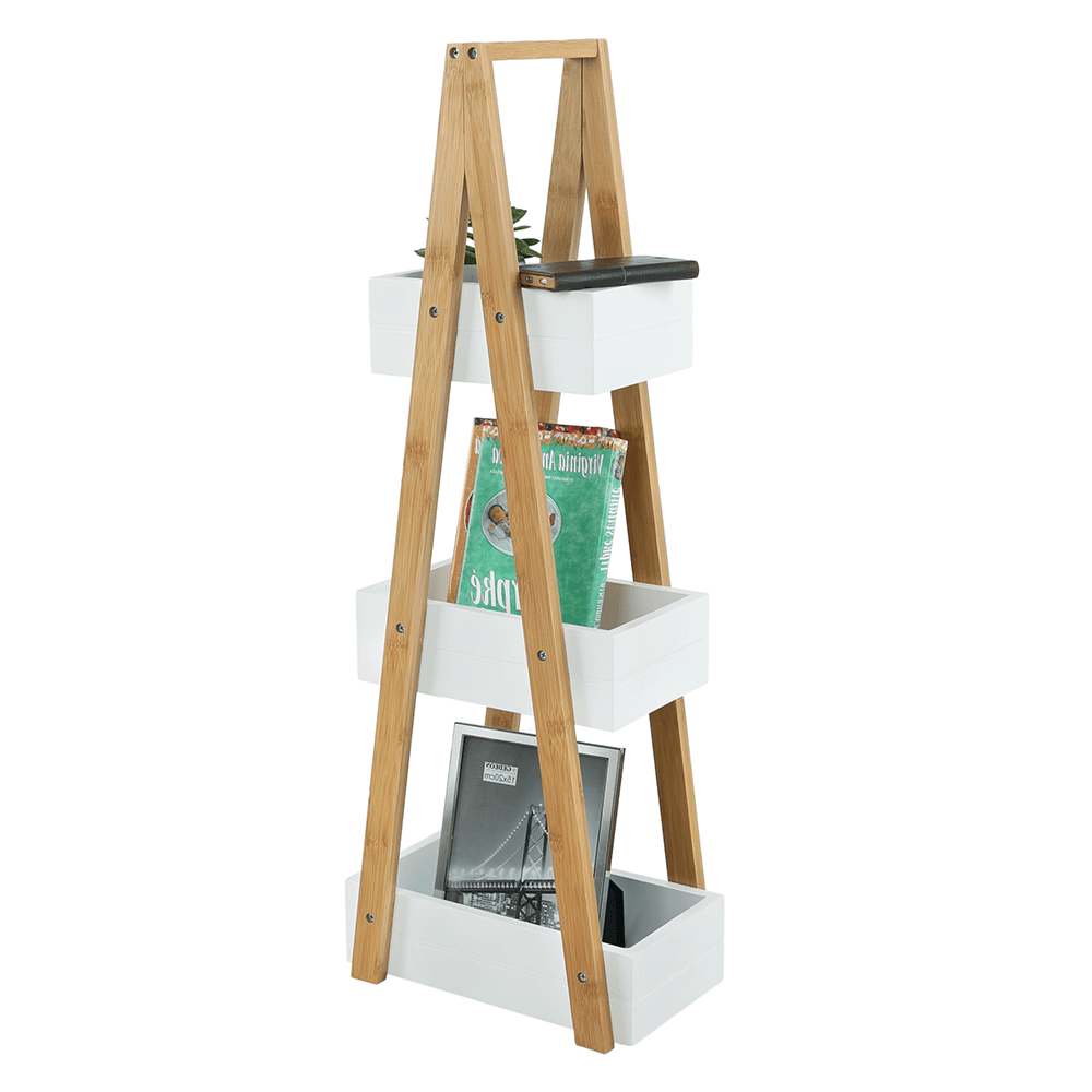 Regál, bambus/biela, VEGO