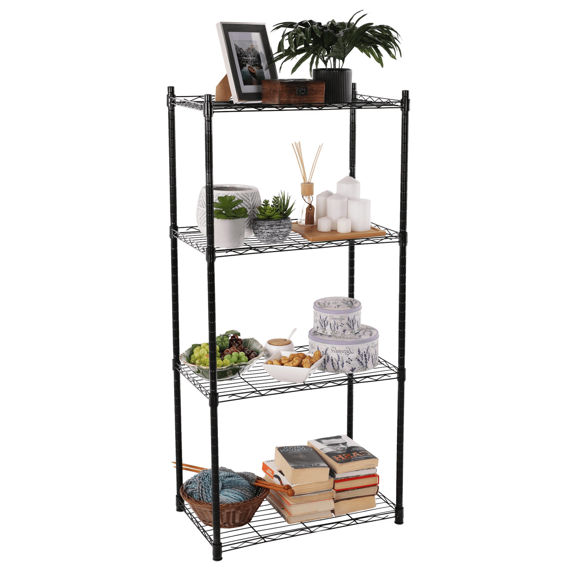Regál s nastaviteľnou výškou políc, 4-policový, čierna, NOVEL