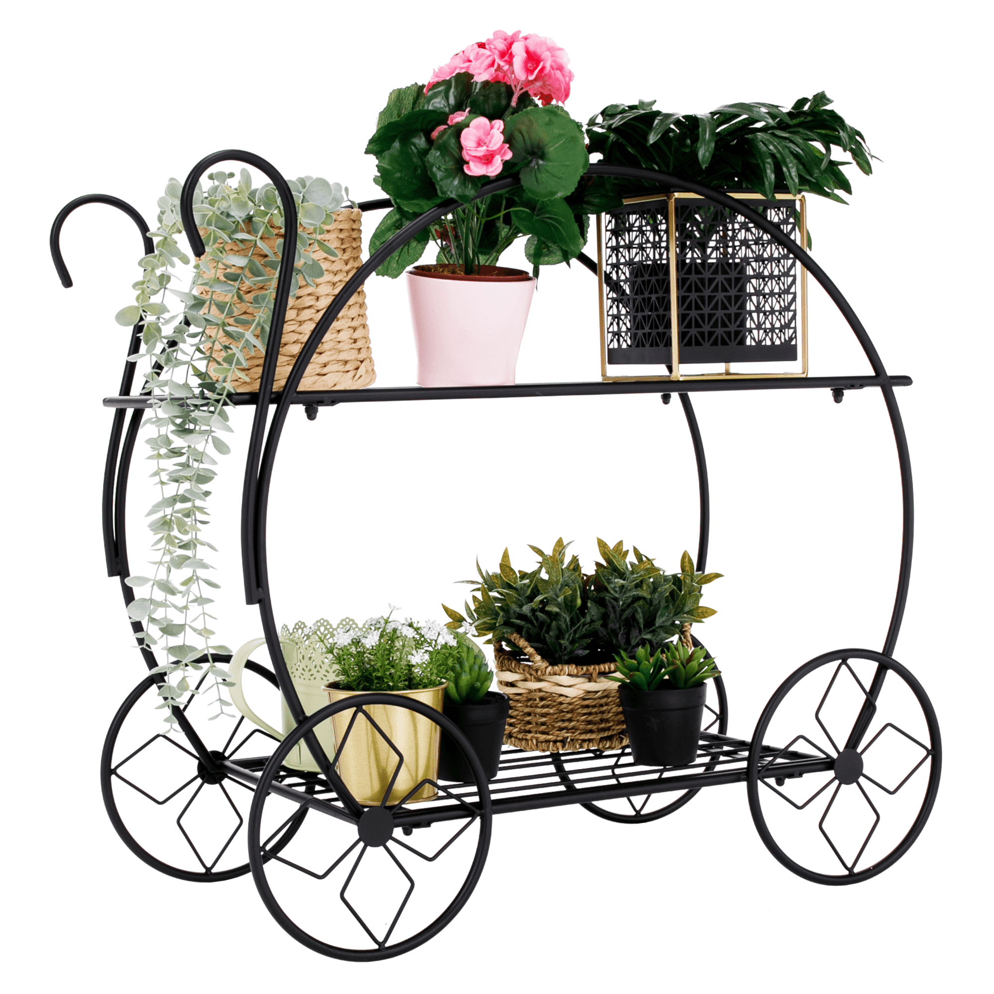 Retro stojan na kvety, vozík, čierna, ODRIO
