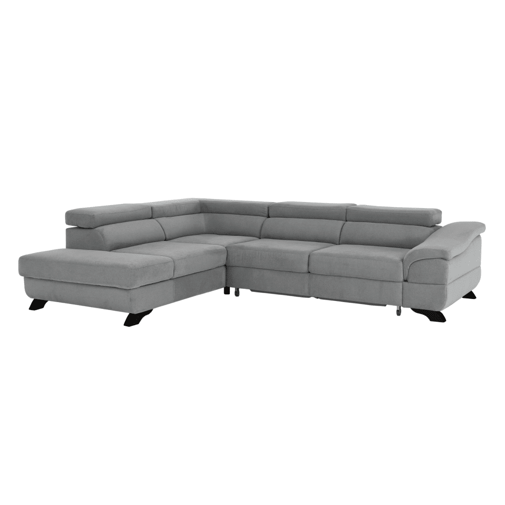 Rohová rozkladacia sedačka, sivá, látka, ľavá, LEGAS