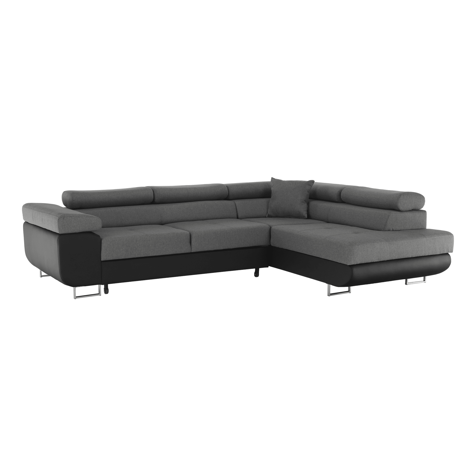 Rohová rozkladacia súprava, čierna/sivá, pravá, GELAN NEW