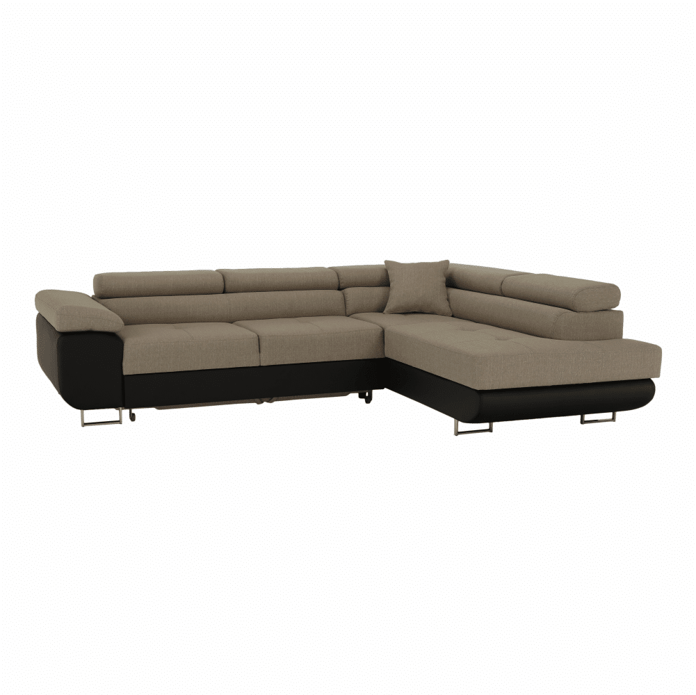 Rohová sedacia súprava, hnedá/béžová, pravá, AMARETO NEW