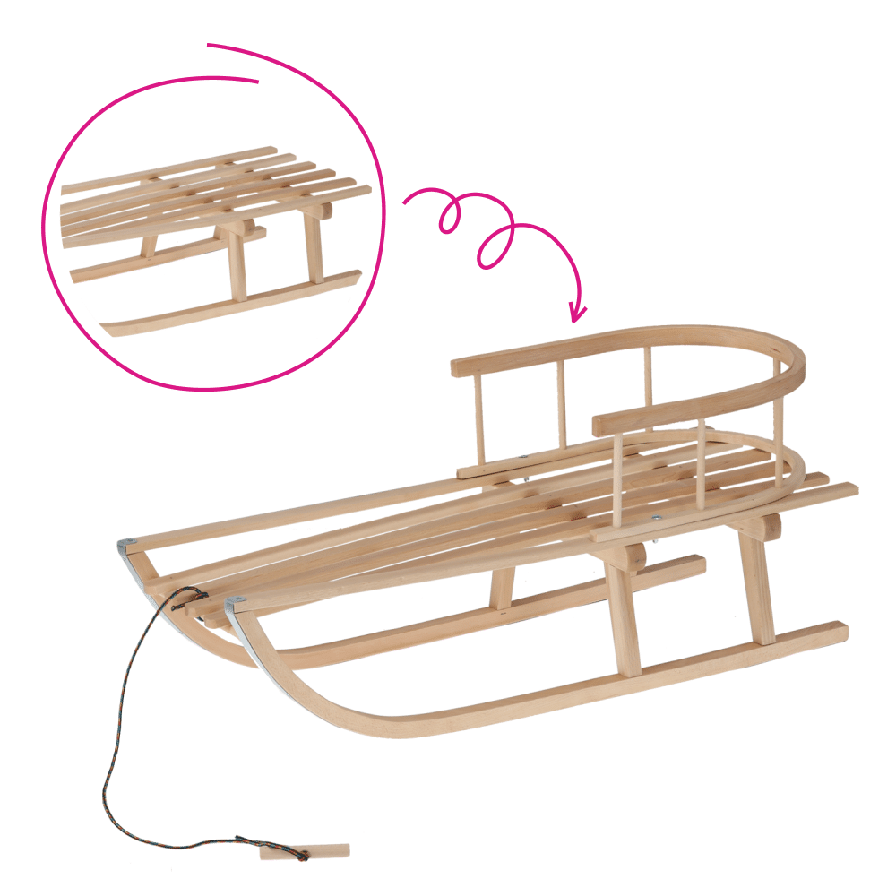 Sánky s operadlom a popruhom, prírodná, bukové drevo, KLZY