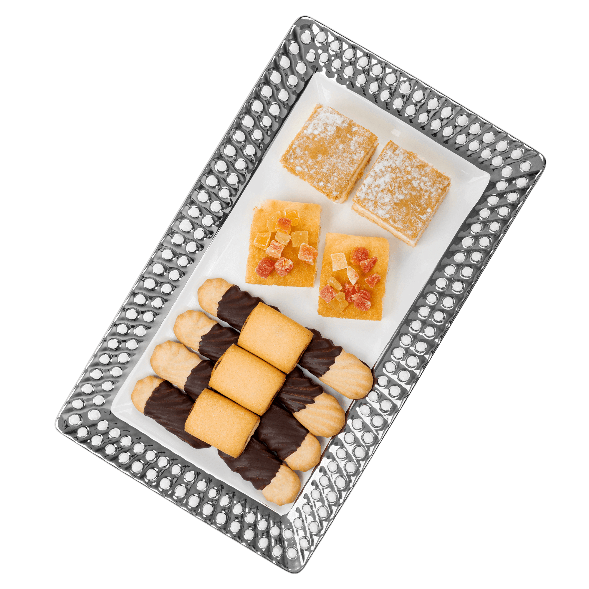 Servírovací tanier, biela/strieborná, keramika, VITALIS