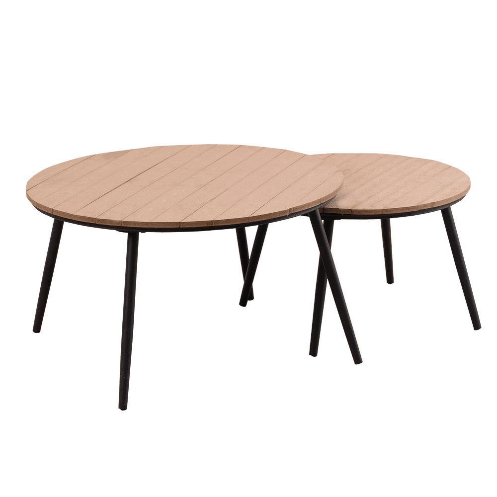 Set dvoch záhradných stolíkov, prírodná/čierna, NADRY
