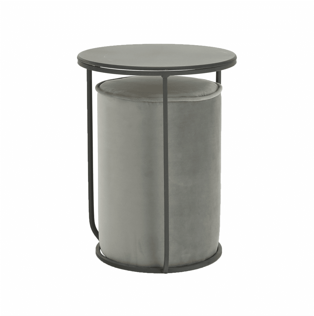 Set stolík a taburet, sivá Velvet látka/tmavosivá, LEILA