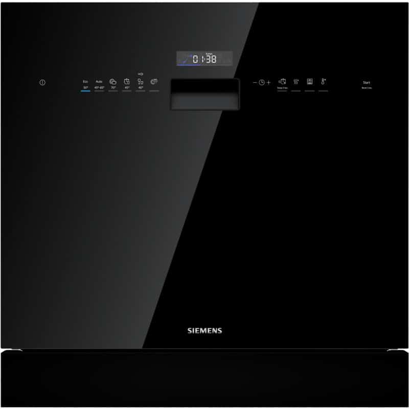 Zabudovateľná kompaktná umývačka riadu – 60 cm, počet programov 5+1 AUTO, 9 l, 8 jedálenských súprav, flexibilný systém košov, celosklenené dvere (čierne sklo)