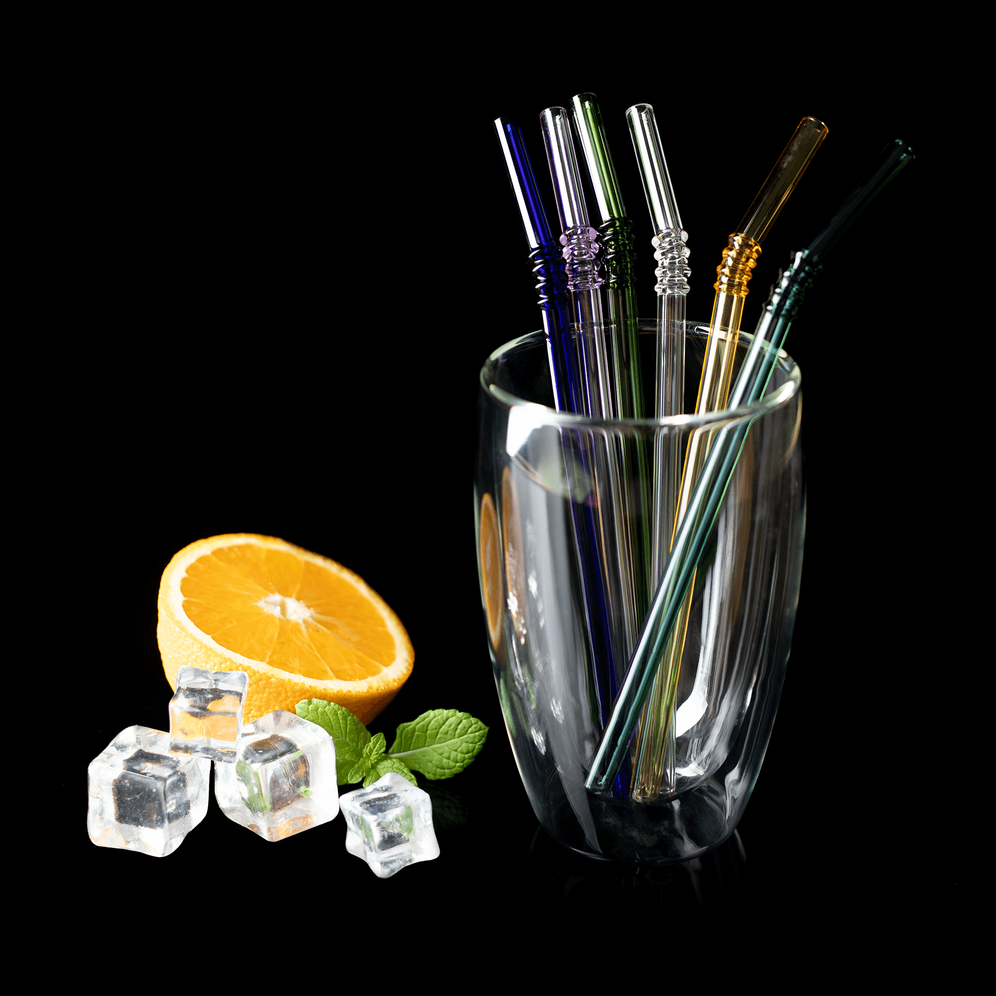 Sklenené slamky+kefka, set 6 ks, mix farieb, HOTCOLD TYP 19