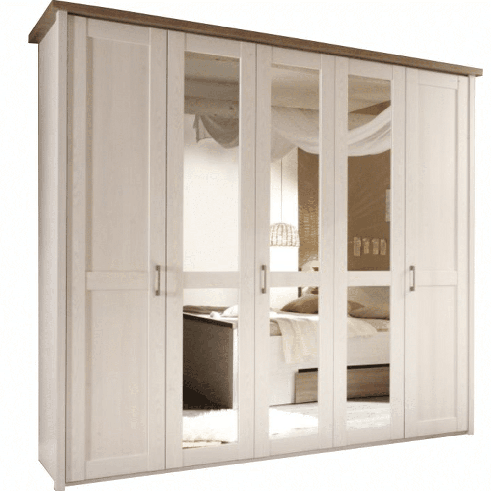 Skriňa 5-dverová so zrkadlom, policová a vešiaková časť LUMERA.