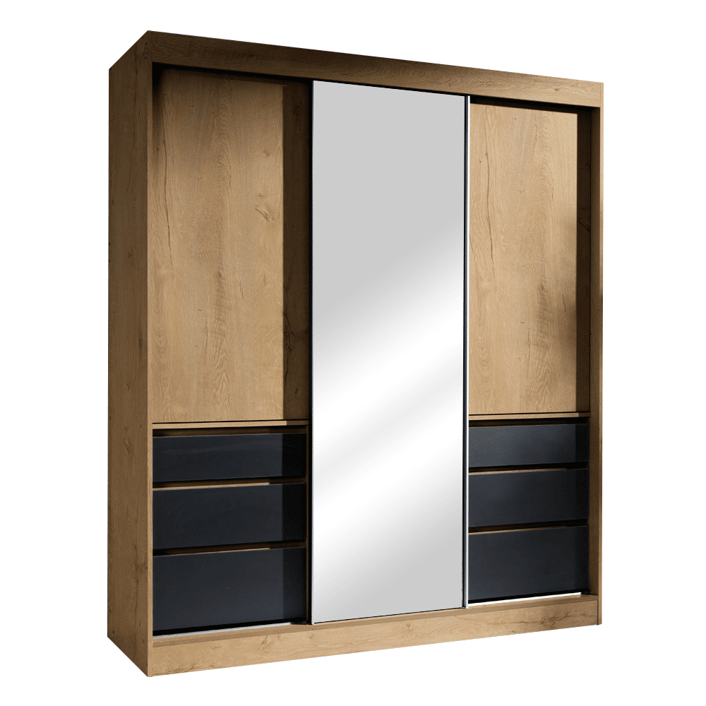 Skriňa s posúvacími dverami, dub lefkas/čierna, 180, ROMUALDA