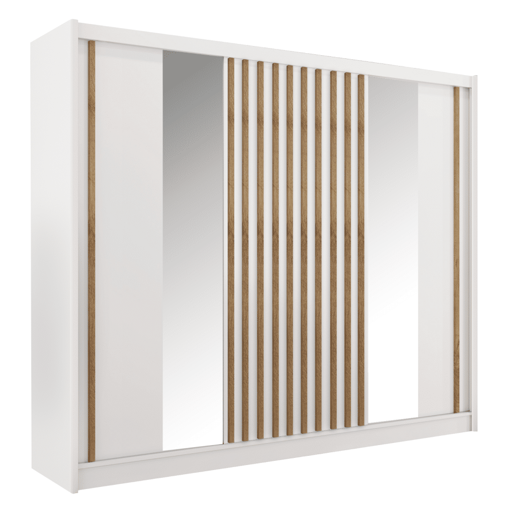 Skriňa s posuvnými dverami, biela/dub craft, 250×215 cm, LADDER