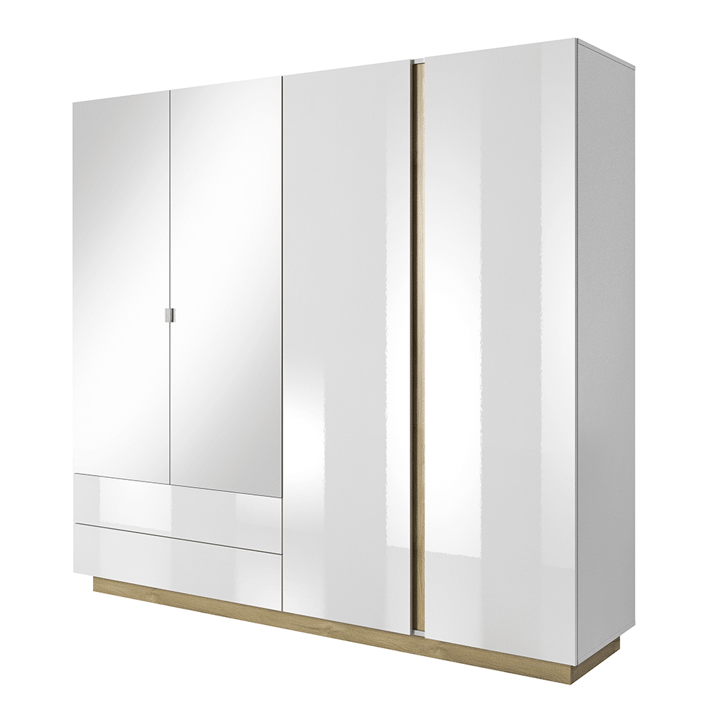 Skriňa so zrkadlom, biela/dub grandson/biely lesk, CITY
