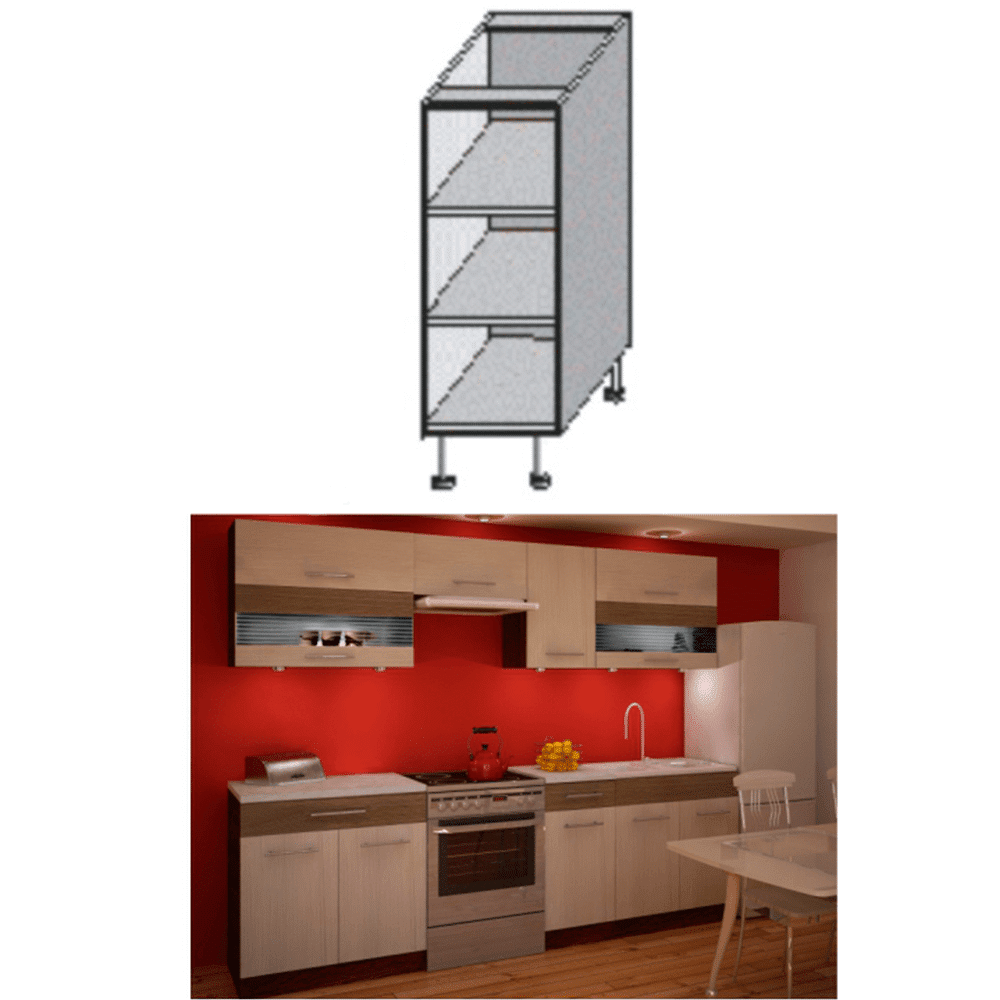 Sektorové skrinky sú dodávané vrátane pracovnej dosky a spodnej lišty. Drezová skrinka dodávaná bez pracovnej dosky. Možnosť dokúpenia univerzálneho Ľ/P drezu LAY ON.