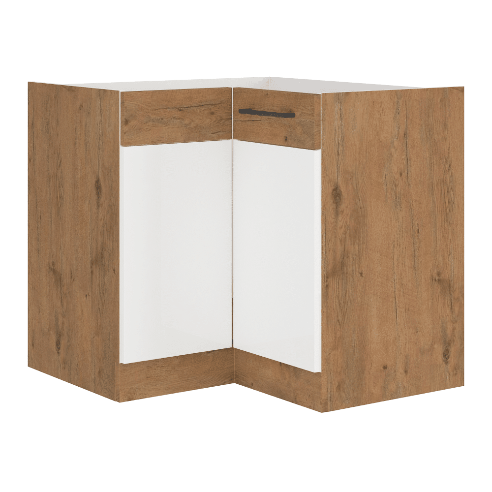 Spodná skrinka rohová, biela extra vysoký lesk HG/dub lancelot, VEGA DN 1F BB