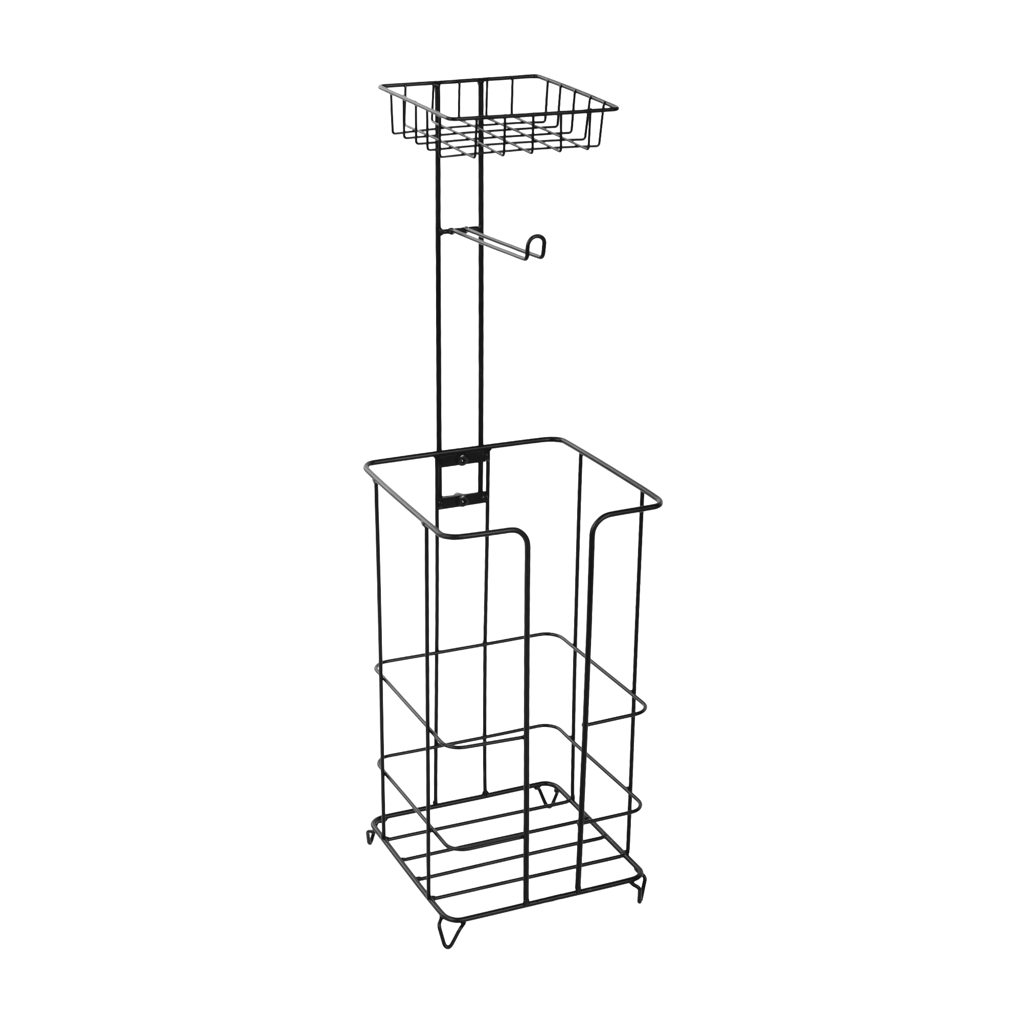 Stojan na toaletný papier s poličkou, kov/čierna, MERDO