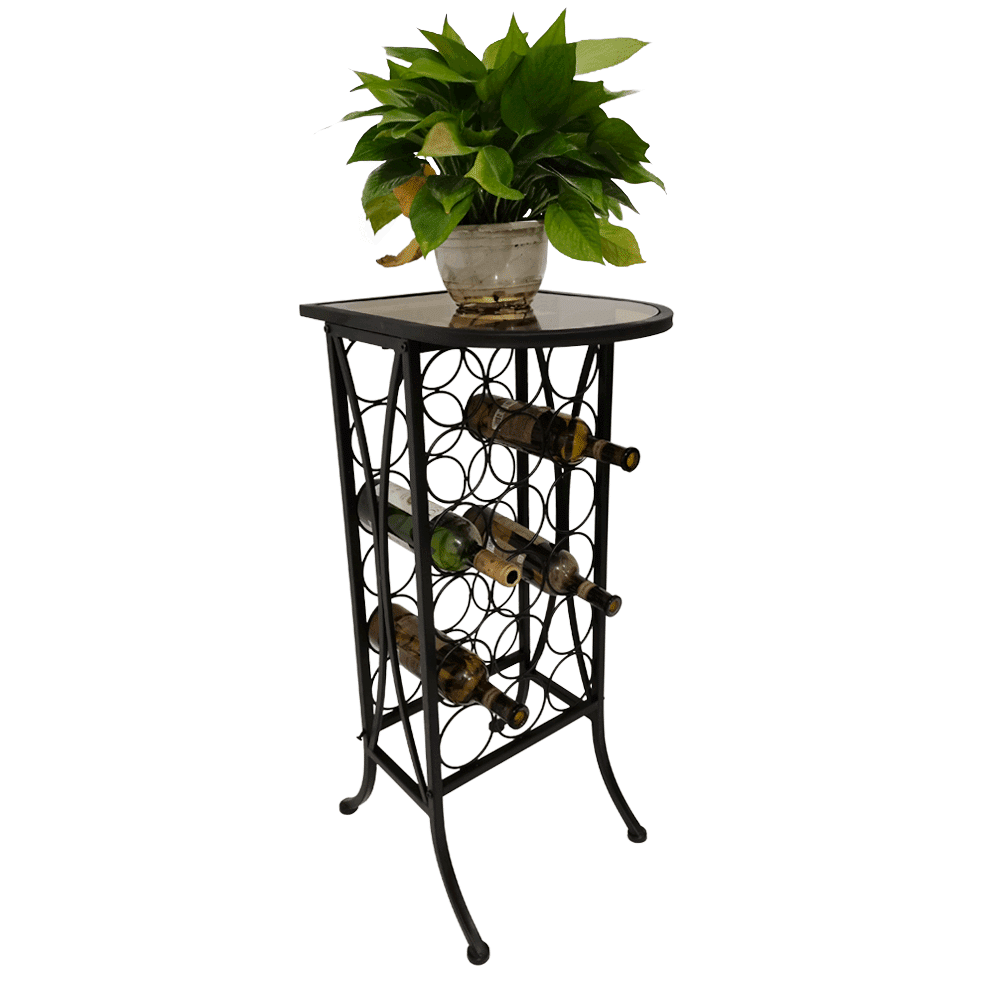 Stojan na víno, 18 fliaš, čierna, kov/sklo, SERGEL