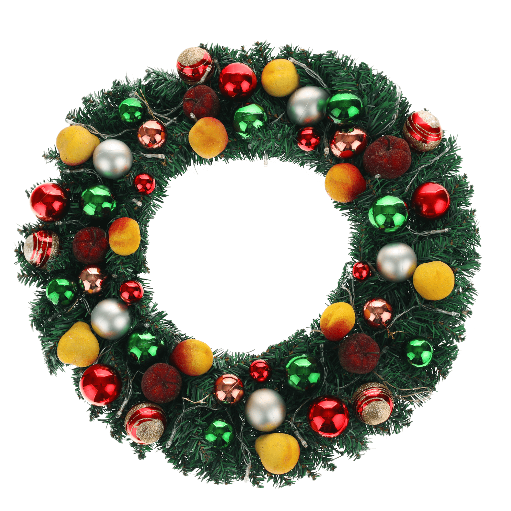 TEMPO-KONDELA ATILA, vianočný veniec s LED svetielkami a dekoráciami, priemer 60 cm