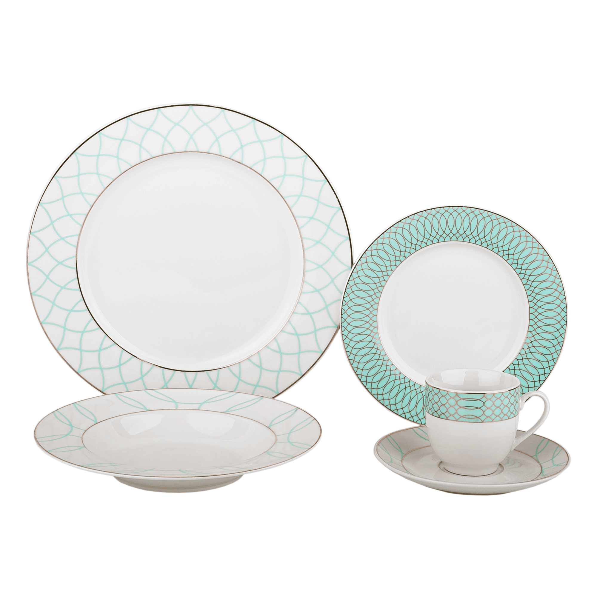 TEMPO-KONDELA DONATELLA SKY BLUE, jedálenská súprava, set 20 ks, porcelán