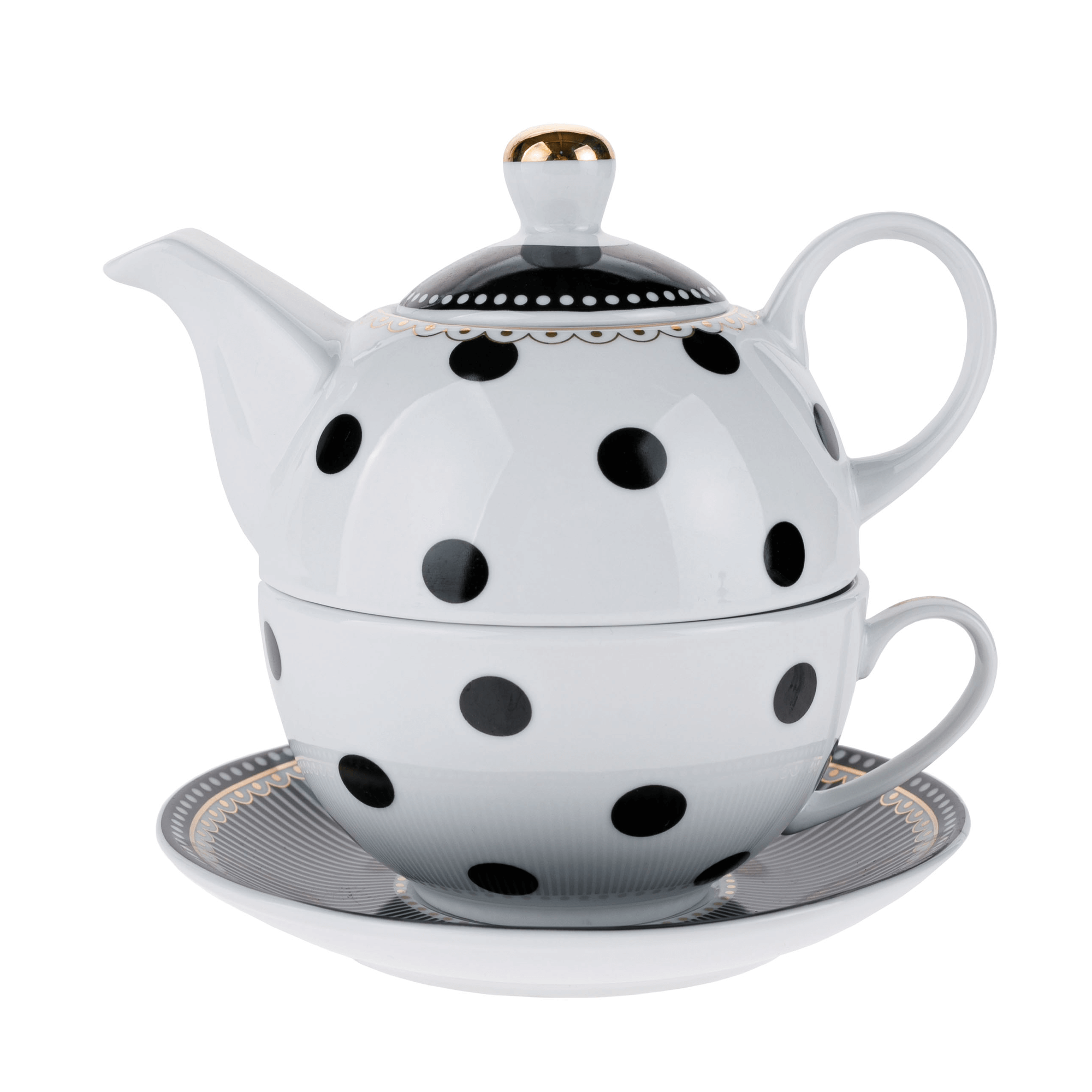 TEMPO-KONDELA DOTS AFTERNOON TEA, kanvička so šálkou, porcelán