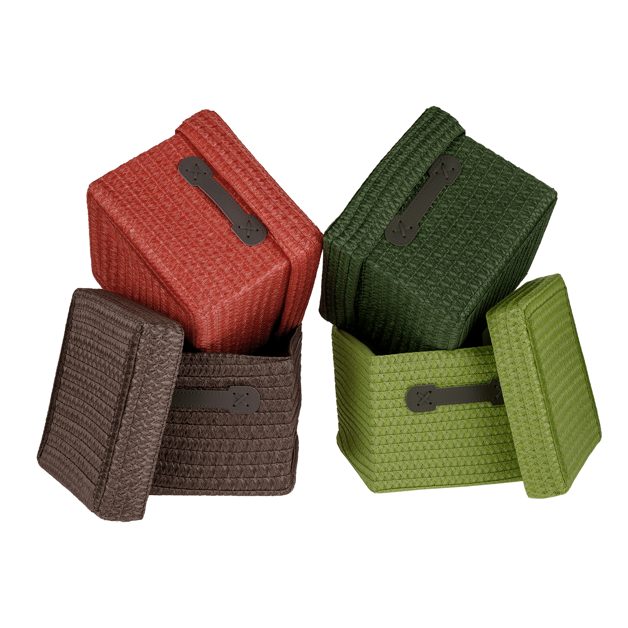 TEMPO-KONDELA IBERIS, úložné boxy, set 4 ks, oranžová/olivová/zelená/hnedá