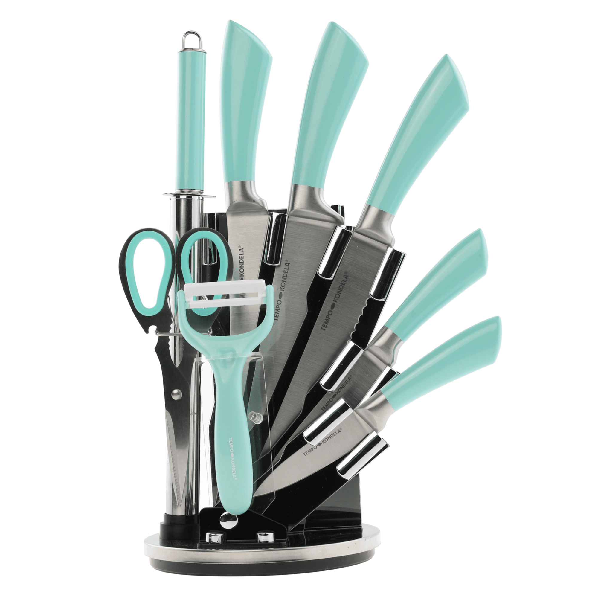 TEMPO-KONDELA JARYN, sada nožov v stojane, 9 ks, neo mint