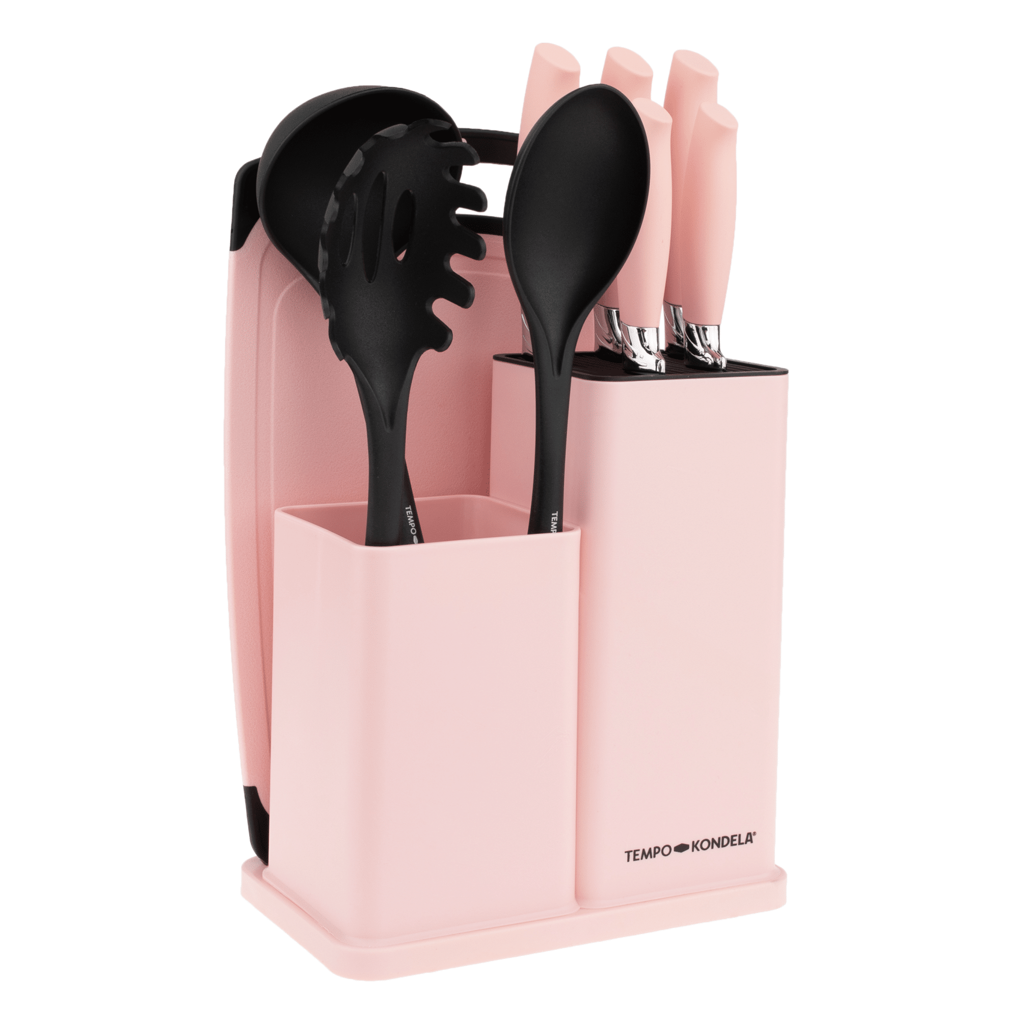 TEMPO-KONDELA KAHON, sada nožov a kuchynského náradia, 10 ks, v stojane, ružová