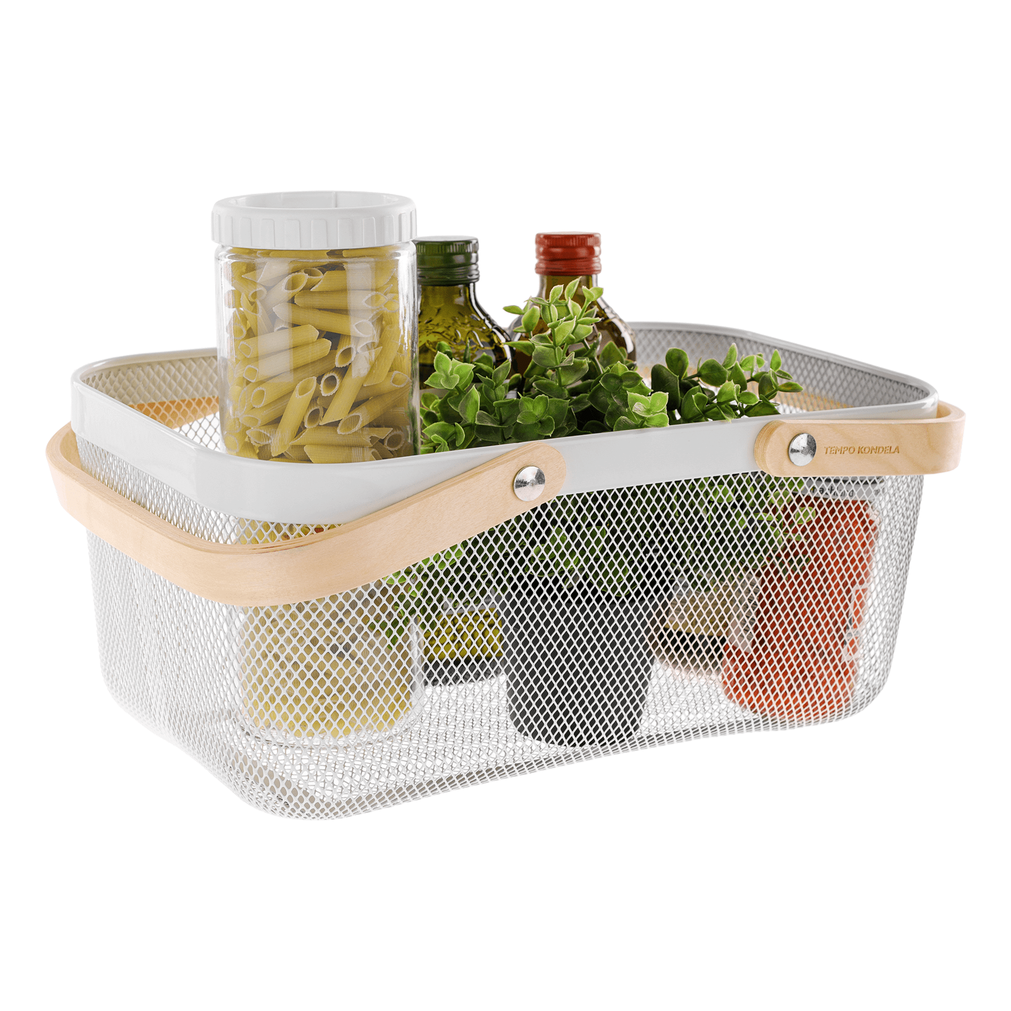 TEMPO-KONDELA KITEN TYP 5, kovový košík s rúčkami, biela