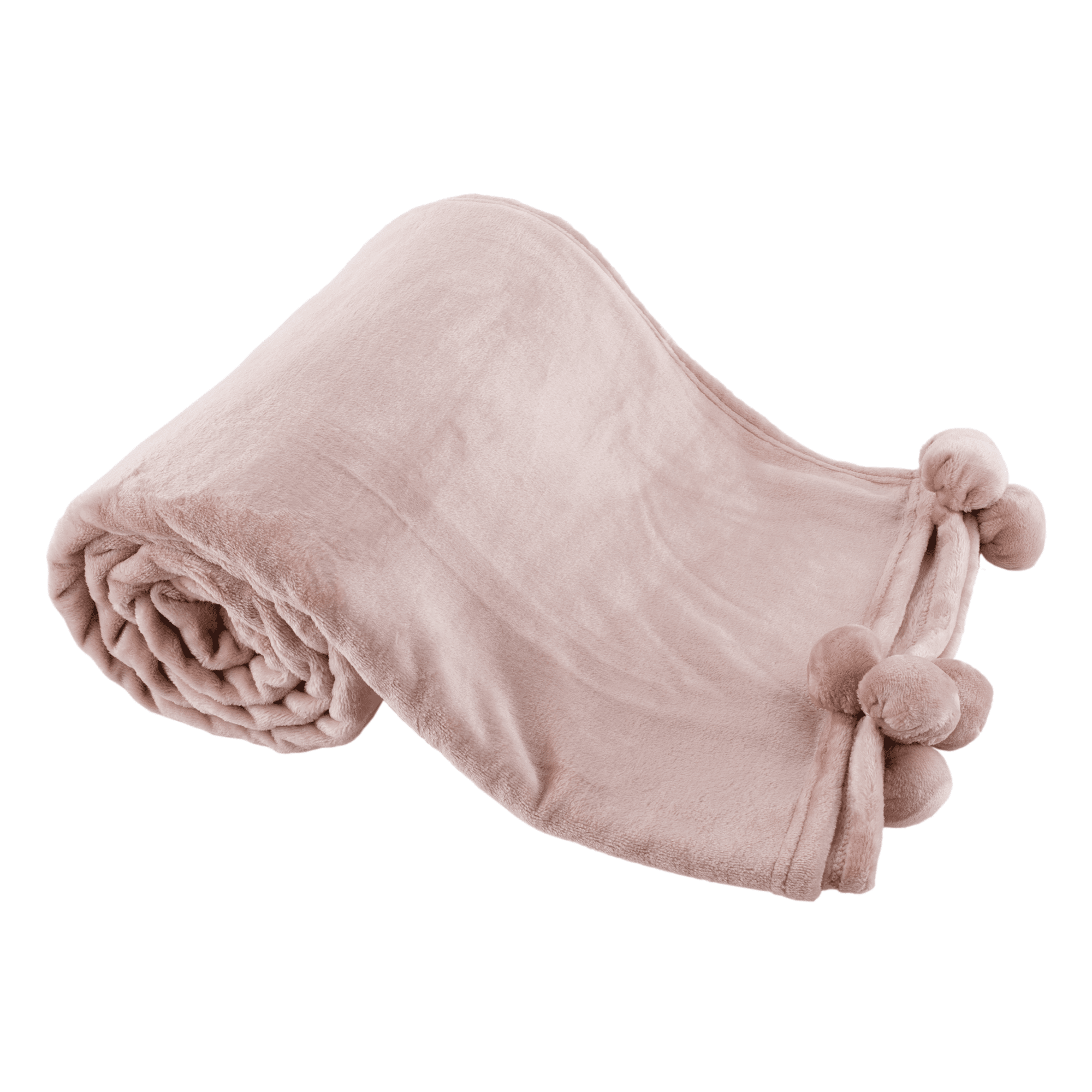 TEMPO-KONDELA LUANG, plyšová deka s brmbolcami, púdrová ružová, 150×200 cm