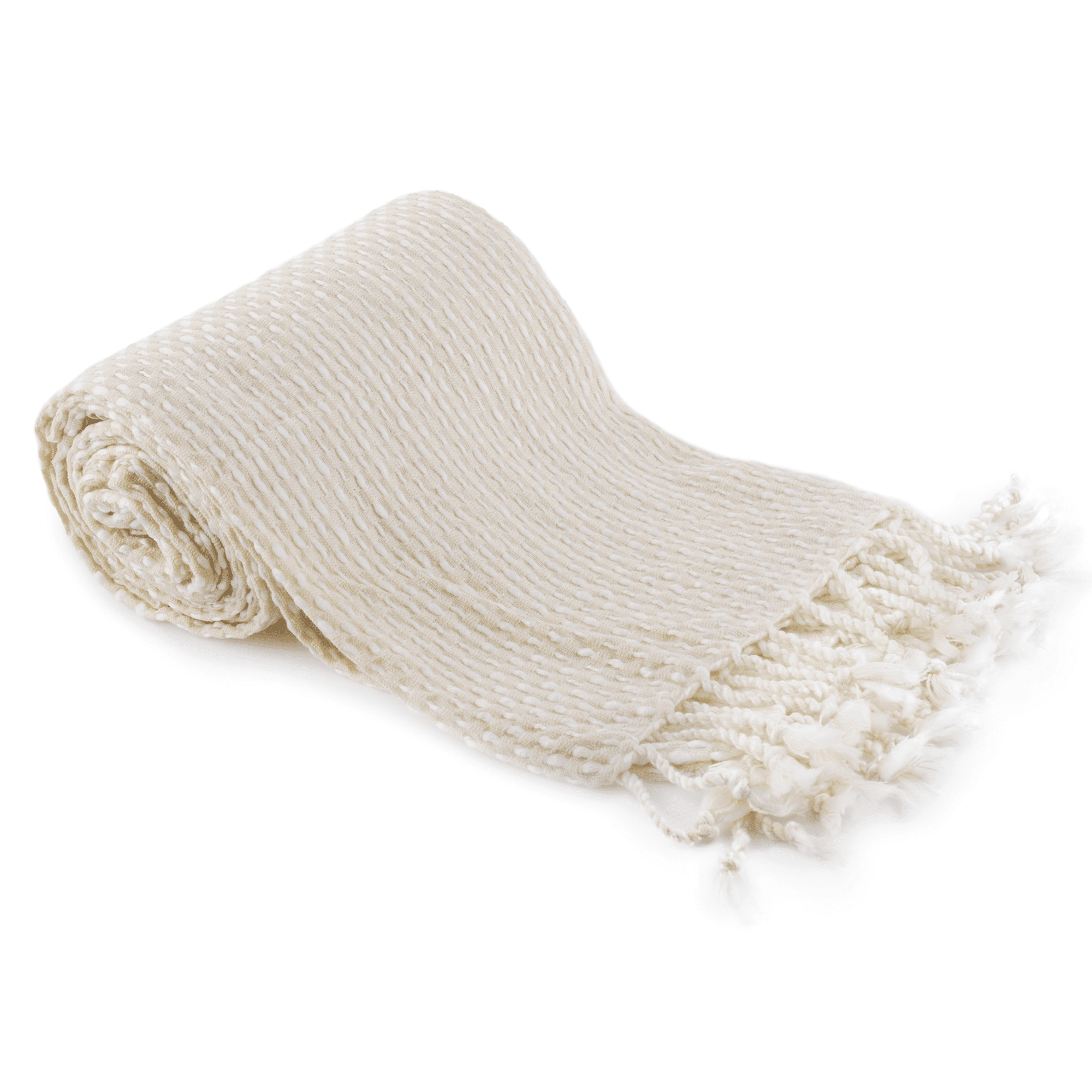 TEMPO-KONDELA TAVAU, pletená deka so strapcami, béžová/vzor, 150×200 cm