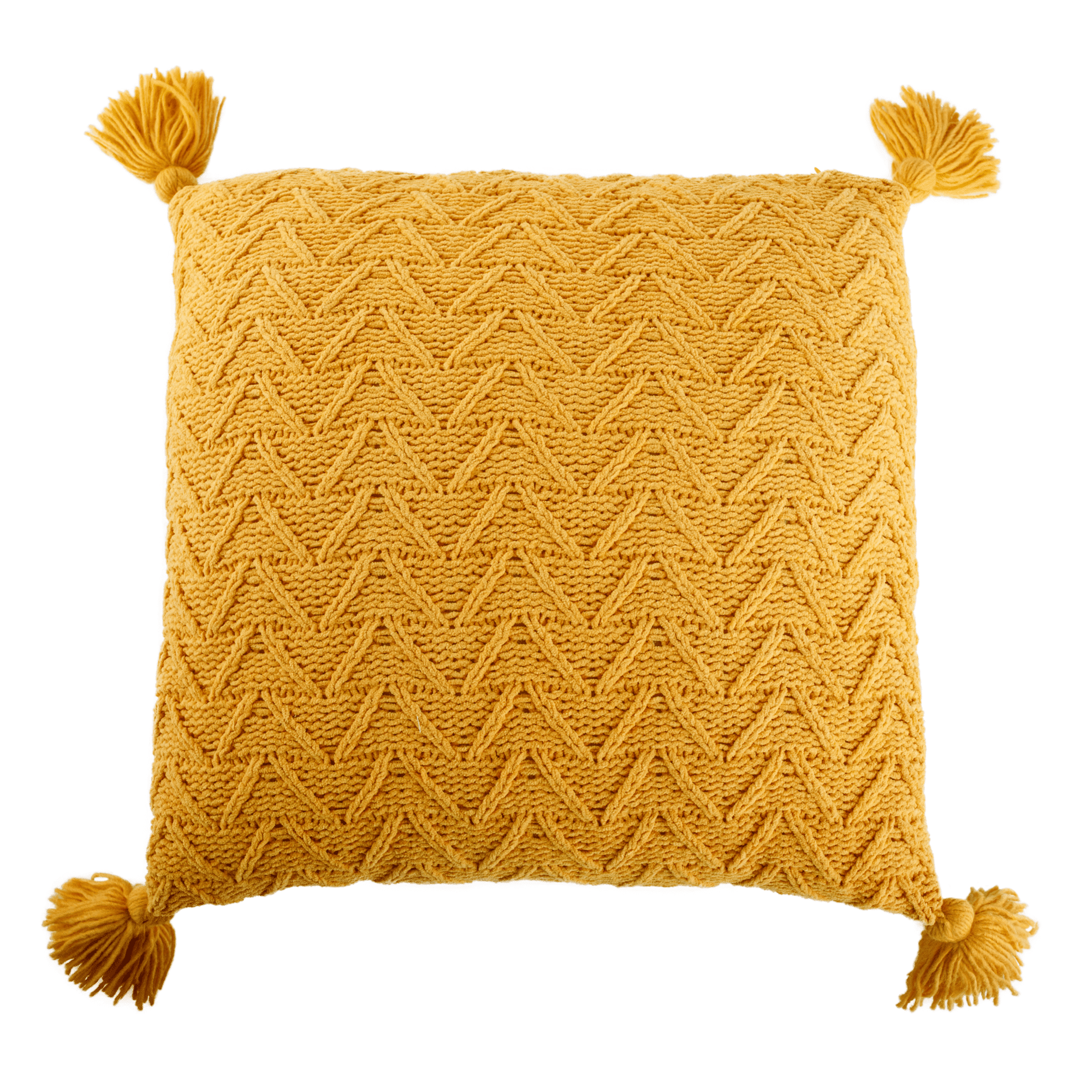 TEMPO-KONDELA USALE, pletený vankúš, horčicová, 45×45