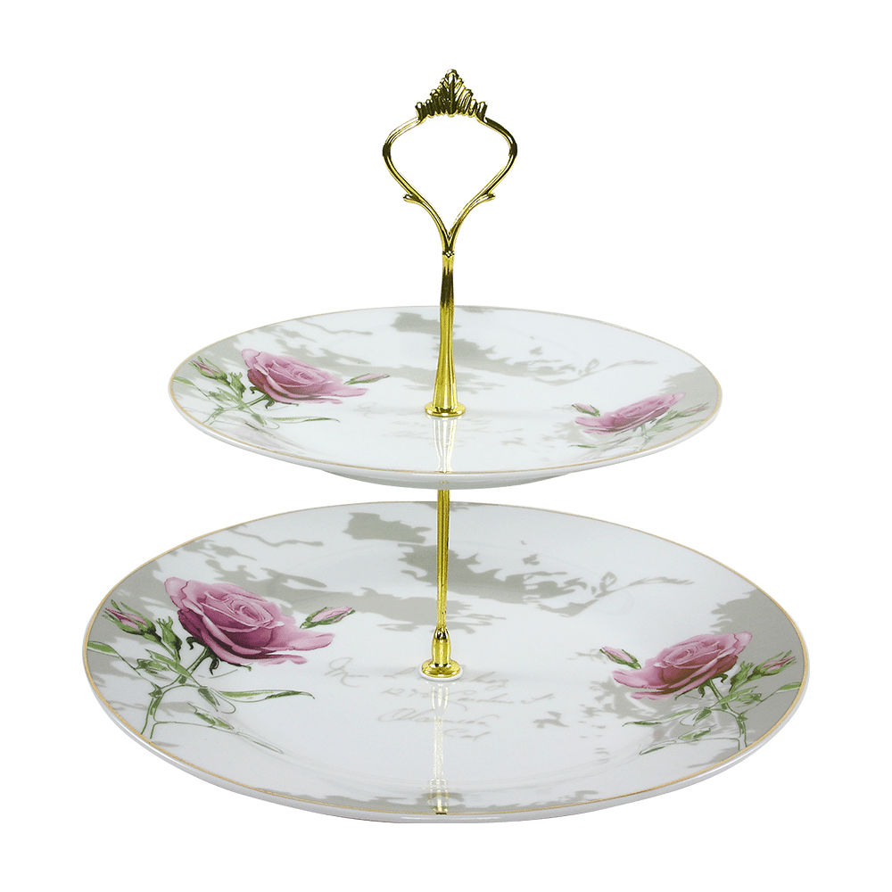 TEMPO-KONDELA WINTER, dvojposchodový etažér, porcelán, biela/fialová/zlatá