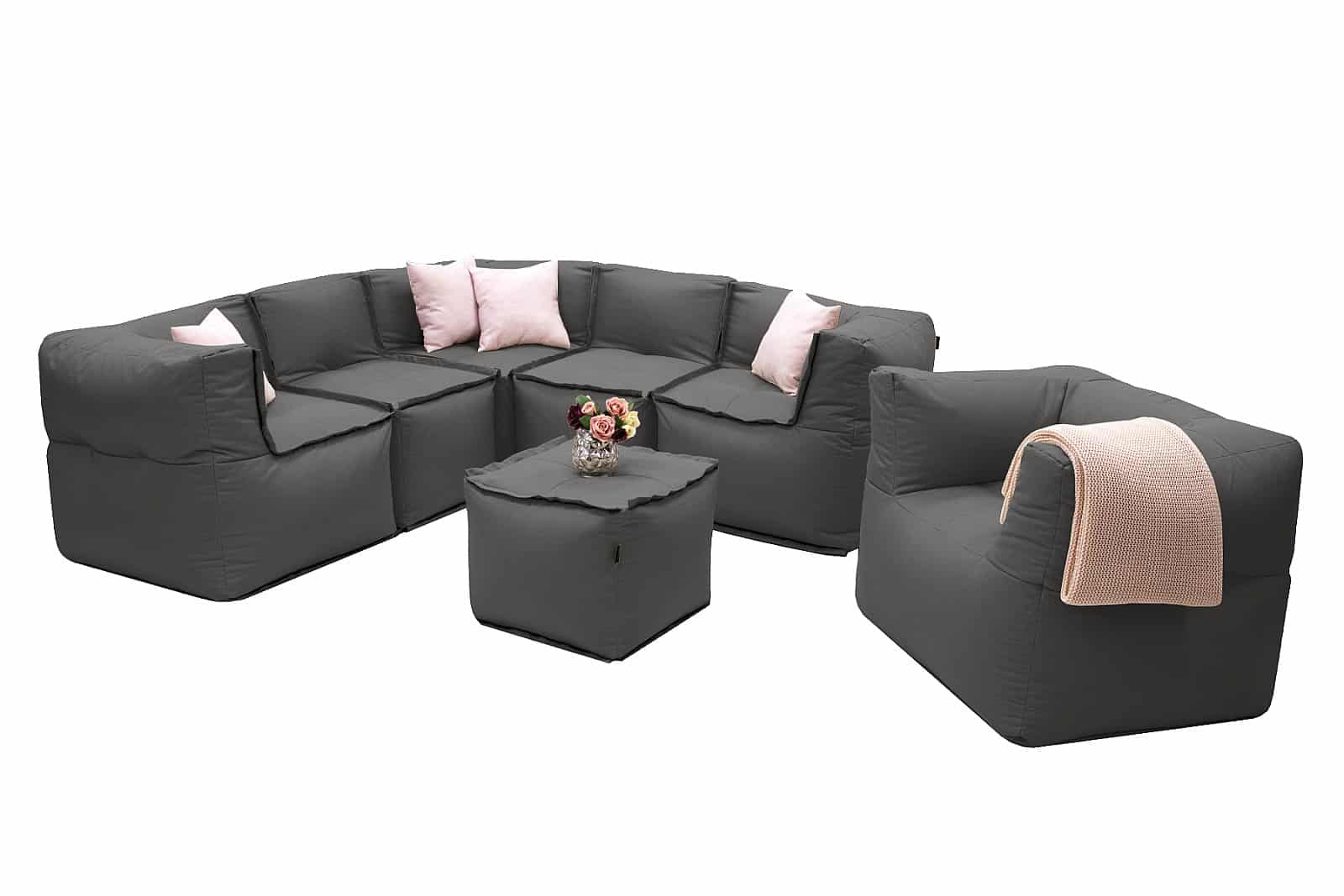 Sestava obsahuje: 3x Záhradný textilný rohový diel MODULTEX (šedo-hnedá), 2x Záhradný textilný stredový diel MODULTEX (šedo-hnedá), 1x Záhradné textilné kreslo MODULTEX (šedo-hnedá), 1x Záhradný textilný stolík/taburet MODULTEX (šedo-hnedá)
