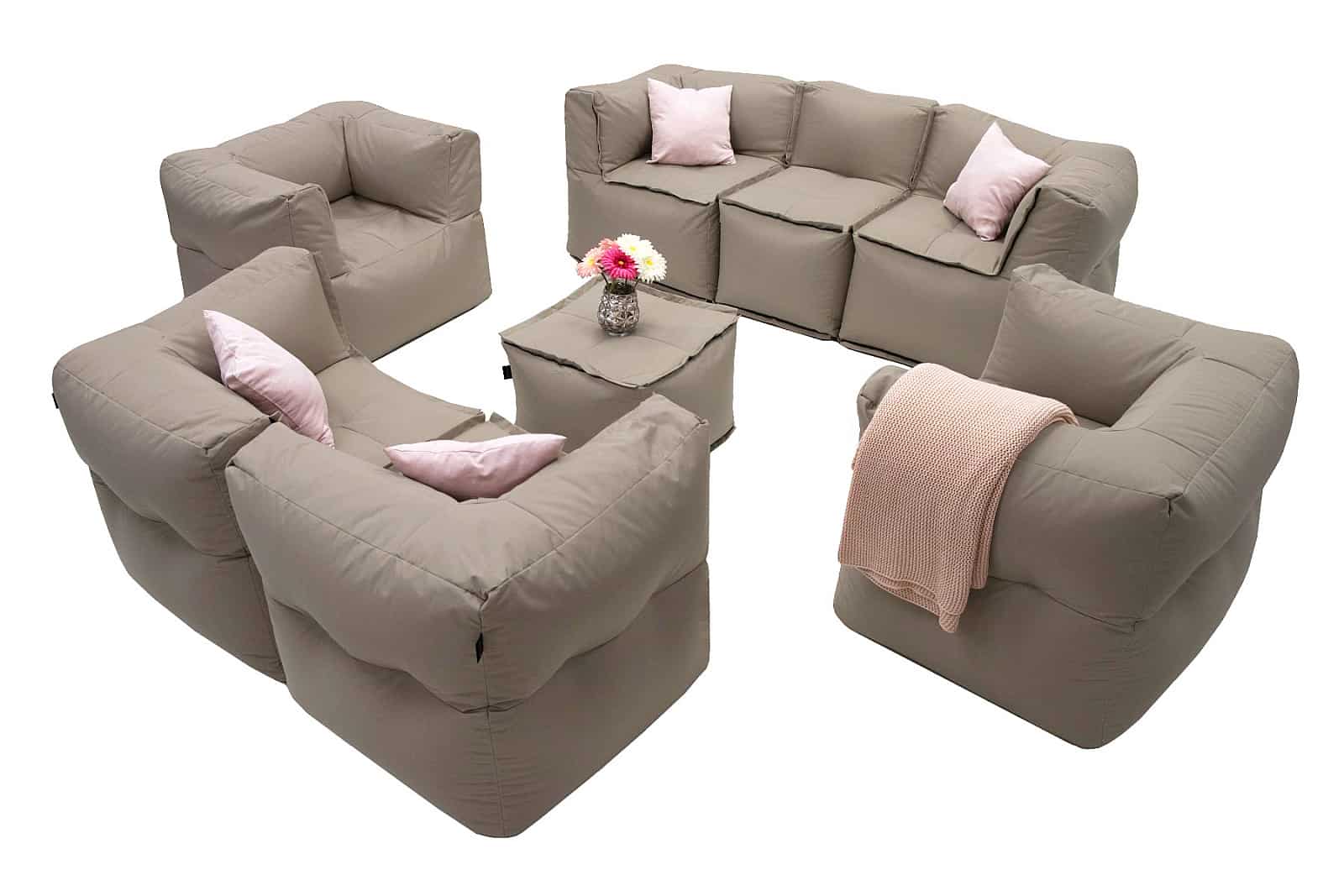 Sestava obsahuje: 2x Záhradný textilný kreslo MODULTEX (cappuccino), 4x Záhradný textilný rohový diel MODULTEX (cappuccino), 1x Záhradný textilný stredový diel MODULTEX (cappuccino), 1x Záhradný textilný stolík/taburet MODULTEX (cappuccino)