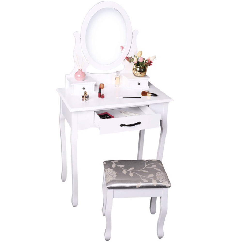 Toaletný stolík s taburetom, biela/strieborná, LINET NEW