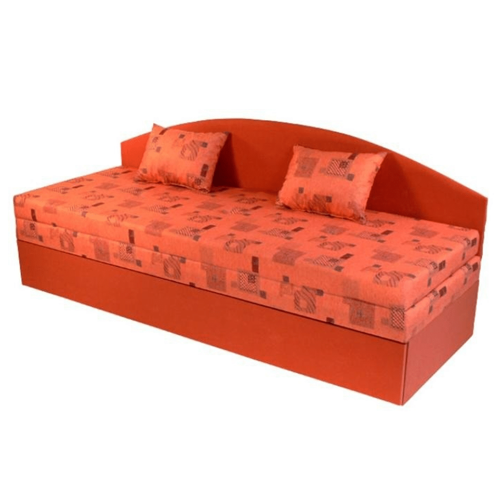 čalúnená váľanda Kara mini, rozkladacia, matrac: molitánový, poťahový materiál: červená, látka Vento C99 + vzor Kazuo C5a, Univerzálna. Rozmery (ŠxHxV): 195x75x79 cm, rozmery lôžka po rozložení: ŠxDxV: 146x195x63 cm.