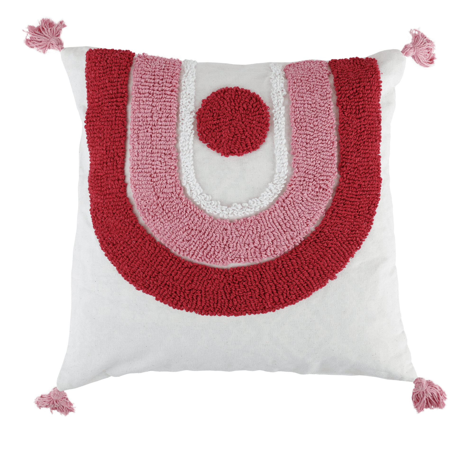 Vankúš, 45×45, krémová/ružová/vzor, EMEST TYP 5