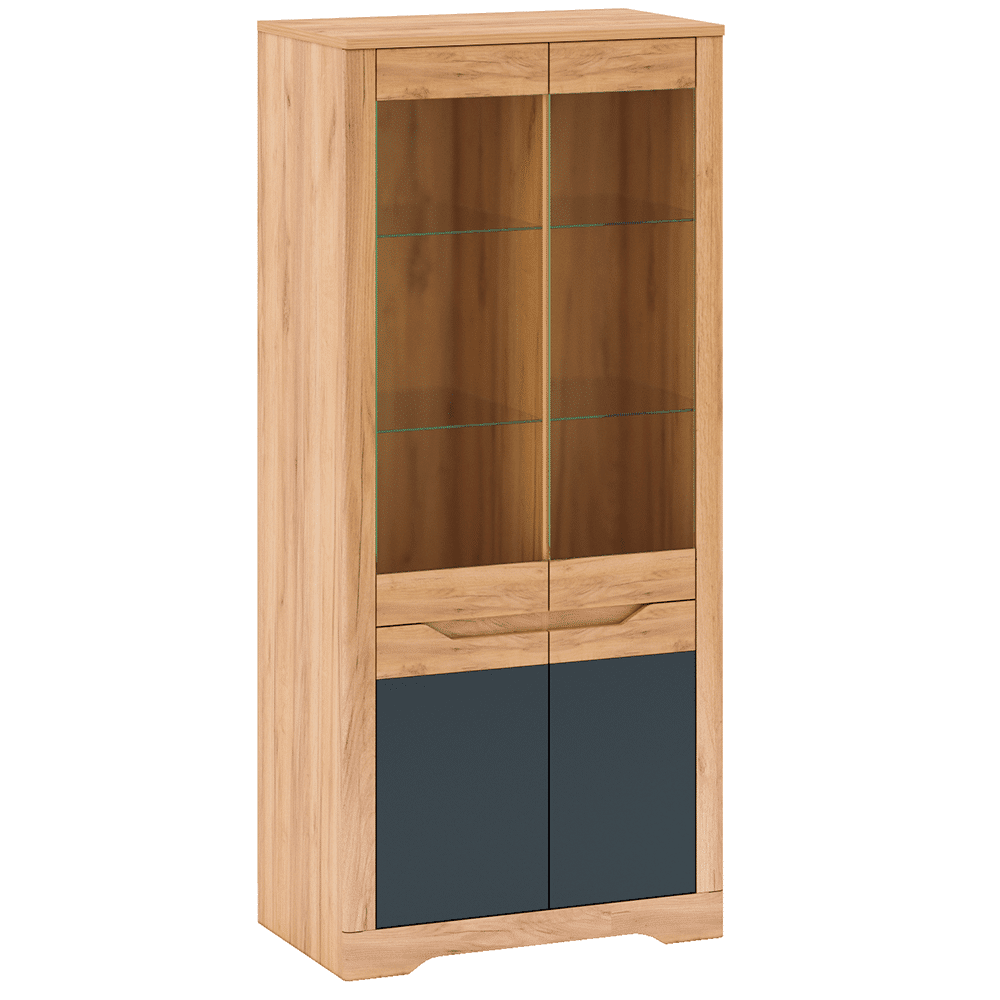 Vitrína H, dub craft zlatý/grafit sivá, FIDEL