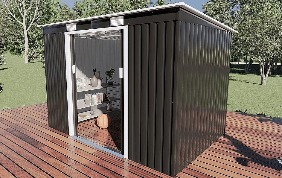 Domček má dvojité posuvné dvere, teda do neho budete mať pohodlný prístup.