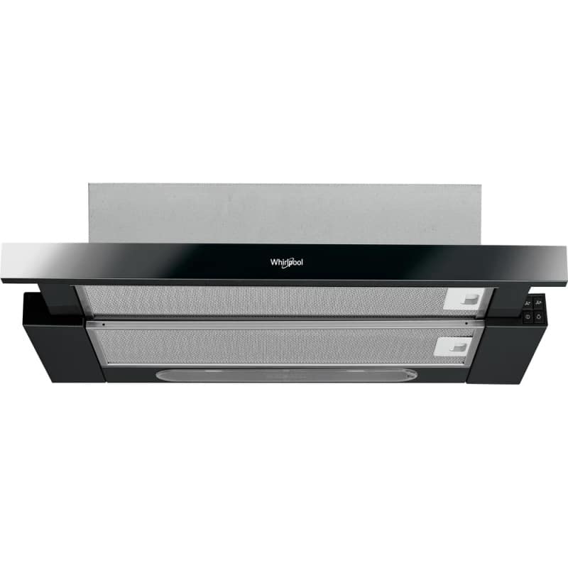 výsuvný odsávač pár, energ. trieda D, max. kapacita odsávania 304m3/h, 3 stupne rýchlosti, hlučnosť 62dB, 1 motor, 1 tukový filter, 2 LED žiarovky, predný panel – čierne sklo