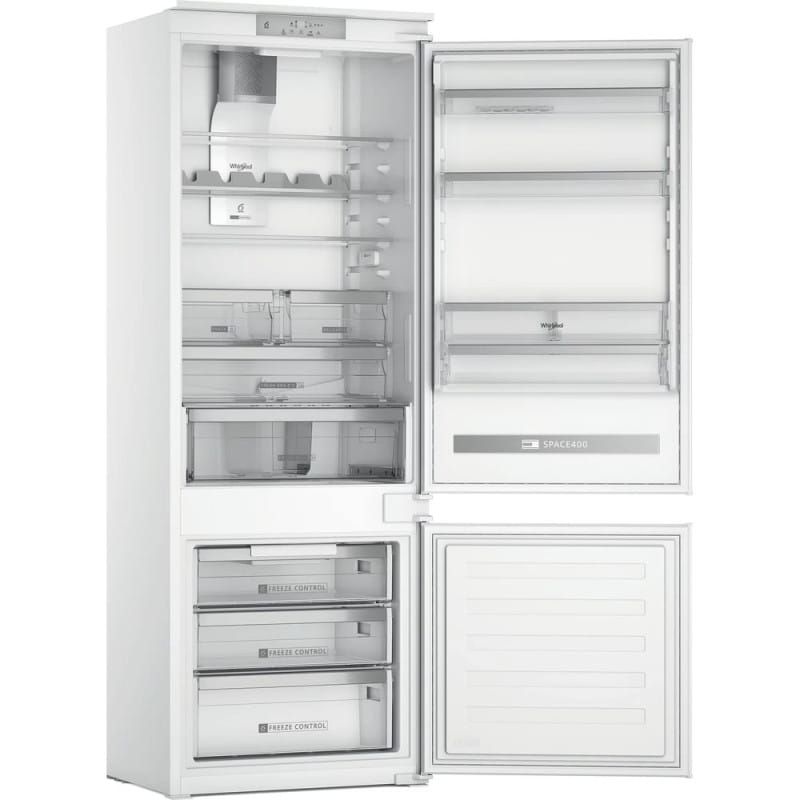 Vstavaná Kombinovaná chladnička, výška 193,5 cm, šírka 70 cm, STOP FROST, 6.ZMYSEL FreshControl, dotykový displej, LED osvetlenie, teplotný alarm, alarm výpadku prúdu, vnútorná výbava Premium, zásuvka 0°C, sklenené poličky, polička na fľaše, 395 l (299/101), energ. trieda E, hlučnosť 35 dB(A)
