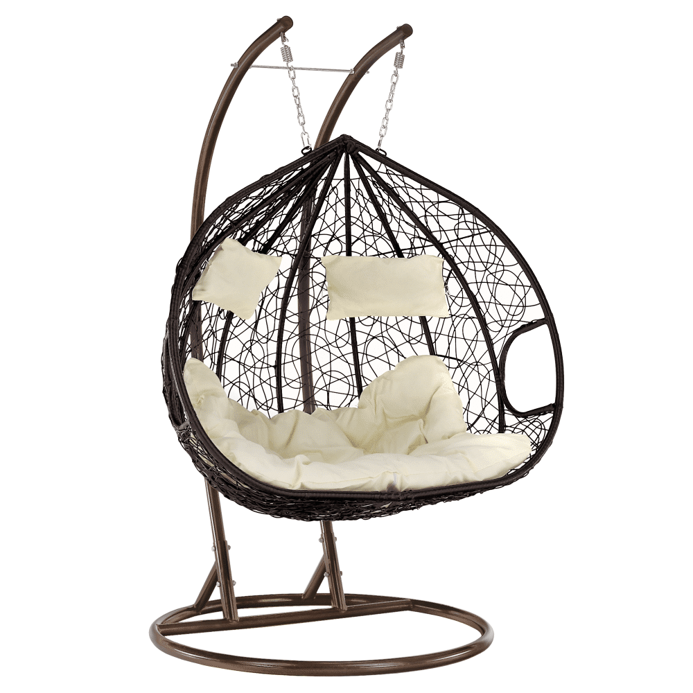 Závesné dvojkreslo, medená/hnedá/krémová, DALVEA 2 NEW